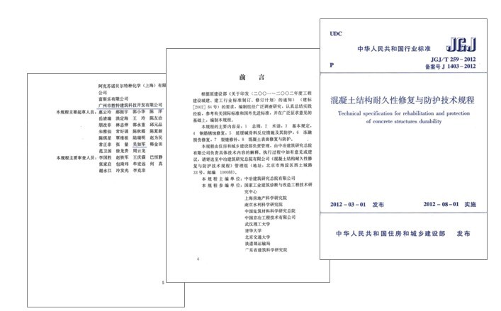 2、《混凝土結(jié)構(gòu)耐久性修復(fù)與防護技術(shù)規(guī)程》(JGJ-200)