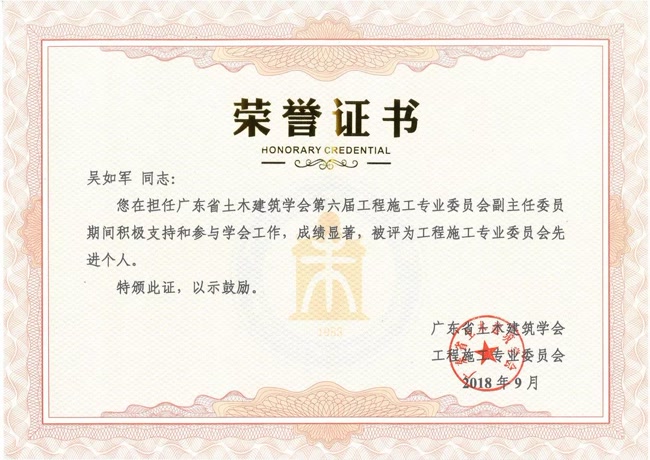 廣東省土木建筑學(xué)會第六屆工程施工專業(yè)委員會先進(jìn)個人