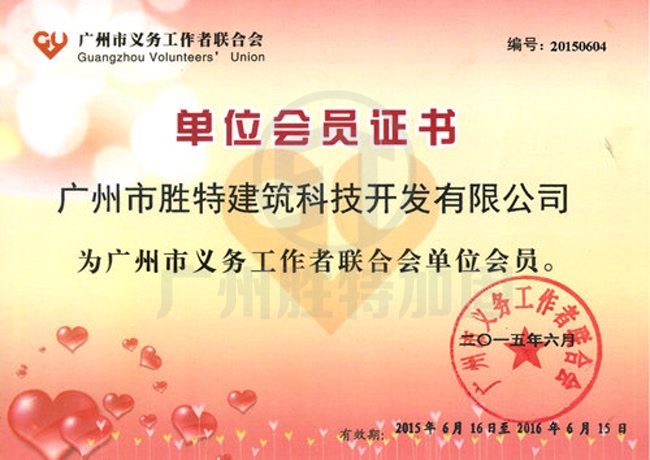 廣州市義務(wù)工作者聯(lián)合會(huì)會(huì)員單位-廣州市勝特建筑科技開發(fā)有限公司資質(zhì)證書展示,勝特加固公司榮譽(yù)一覽.我司專注于建筑加固改造工程,廠房改造,電梯加固等工程設(shè)計(jì)及施工,擁有加固改造施工資質(zhì),特種專業(yè)工程資質(zhì)等一系列特種工程資質(zhì).公司加固技術(shù)實(shí)力雄厚,獲國(guó)家高新技術(shù)企業(yè)認(rèn)證!歡迎來電咨詢加固工程業(yè)務(wù)