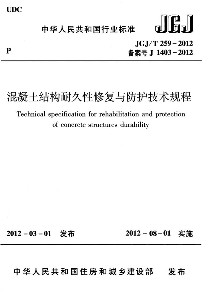 我司參編規(guī)范:《混凝土結(jié)構(gòu)耐久性修復(fù)與防護(hù)技術(shù)規(guī)程》JGJ/T 259-2012
