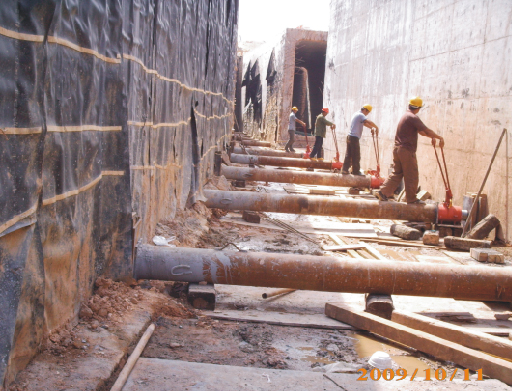 (2)對(duì)建筑物進(jìn)行加固處理,制作行走底盤(行走梁);