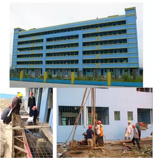 2006年,在各界友人的關(guān)心與全體勝特人的努力下,我們順利地承接了具有較高難度的糾傾工程——東莞正騰工業(yè)園宿舍樓房屋糾偏糾傾加固工程,該建筑物宿舍樓位于東莞市洪梅鎮(zhèn)望砂公路梅沙路段.該超長建筑(60余米)由干基礎(chǔ)不均勻沉降,導(dǎo)致該建筑物左右呈扭曲狀傾斜,業(yè)主及相關(guān)主管部門已準(zhǔn)備拆除重建,但我公司司獲悉后,對施工現(xiàn)場進(jìn)行了仔細(xì)勘察.對該建筑物的相關(guān)技術(shù)資料進(jìn)行了認(rèn)真研究,結(jié)合我司多年來的施工經(jīng)驗(yàn)編制了詳細(xì)的建筑基礎(chǔ)沉降處理與糾傾方案,順利通過了專家們的方案論證。該工程盡管施工難度相當(dāng)大,我司經(jīng)過多方努力,使工程順利按期完工,一舉獲得超長建筑糾傾和結(jié)構(gòu)基礎(chǔ)加固的成功,使得該宿舍樓免于拆除復(fù)建,取得了良好的經(jīng)濟(jì)效益和社會(huì)效益,獲得一致好評。