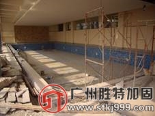 東莞某會所游泳池地基加固工程。該工程涉及泳池防滲漏處理、泳池防滲漏處理等。該會所大樓附近分布著三個獨(dú)立的游泳池,室內(nèi)泳池大體呈長方形,面積為250㎡;室外兒童泳池呈環(huán)扇形,面積為452.37㎡;室外成人泳池呈階梯形。地臺面積為1470㎡。泳池建成后,在蓄水后的使用過程中,由于地基承載力不足,泳池與地臺發(fā)生較嚴(yán)重的沉降現(xiàn)象,同時(shí)由于沉降產(chǎn)生的泳池裂縫導(dǎo)致池水嚴(yán)重滲漏,若不進(jìn)行泳池裂縫修補(bǔ),那勢必影響了泳池的正常使用.最終勝特加固-廣州加固公司采用地基加固改造順利的完成了該工程項(xiàng)目。