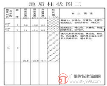 場地地基由人工填土(Qml)、第四系沖淤積層(Qal)、第四系殘積層(Qel)及古近系始新統(tǒng)華涌組(E2h)“紅層”碎屑巖組成,工程地質綜合剖面共分10層,自上而下的巖性特征分述如下:第1層,人工填土(Qml),層厚0.50~3.0m,平均1.56m,土層由粉質粘土及風化砂等回填而成,輕度壓實,均勻性差,承載力低。第2層,粉質粘土,層厚0.60~10.30m,平均3.08m,土層由粉、粘粒組成,飽和,可塑~硬塑為主,局部軟塑,含沙粒,承載力不高。第3層,淤泥質土,層厚0.90~12.10m,平均5.54m,土層呈灰黑色,手拈粘滑,飽和,流塑,局部夾沙粒層及腐植物,承載力極低,抗剪強度低,為不良地基。第4層,粉砂、細砂,層厚2.0~3.1m,平均2.74m,砂土層顆粒均勻,飽和,零星分布,中密為主,局部密實,含有粘性土及中粒砂,承載力低。第5層,粉質粘土,層厚2.1~6.6m,平均4.14m,由粉、粘粒組成,飽和,可塑為主,局部軟塑或硬塑,局部含砂粒,承載力不高。第6層,中砂,層厚4.5~5.0m,平均4.75m,砂土層顆粒均勻,飽和,中密為主,局部稍密,含有較多粉細砂及粗粒砂,有一定承載力。第7層,殘積土,層厚1.0~9.1m,平均3.12m,按土性分為殘積粉質粘土、殘積粉砂、細砂及殘積中砂、粗砂。局部分布,有一定的承載力。第8層,全風化巖帶,層厚0.60~10.5m,平均3.66m,巖性為泥質粉砂巖、粉砂巖、細砂巖及中砂巖,局部分布,承載力稍高。第9層,強風化巖帶,層厚2.0~27.8m,平均15.95m,巖性為泥質粉砂巖、粉砂巖、細砂巖、中砂巖及粗砂巖,層位穩(wěn)定,承載力較高,均可作預制樁基礎持力層。第10層,中風化巖,層厚在6.1~17.8m,平均12.85m,巖性為泥質粉砂巖、粉砂巖及細砂巖,承載力高。