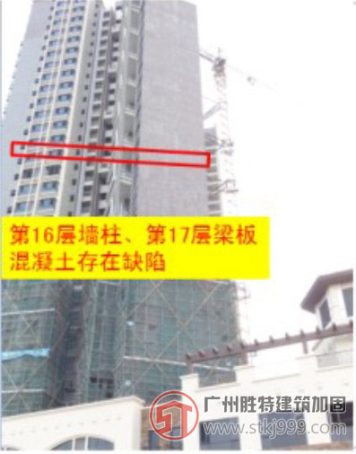 本項(xiàng)目位于廣東省中山市內(nèi),設(shè)計(jì)為商住樓,地下1層,地上30層,共31層,單層面積為874.495㎡,工程已完工封頂。經(jīng)檢測發(fā)現(xiàn)16層剪力墻、柱及17層梁板砼