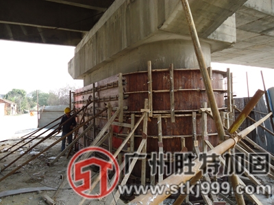 該橋于1993年建成通車,2004-2005年期間,養(yǎng)護(hù)人員發(fā)現(xiàn)該橋的8#墩墩身底部小里程面出現(xiàn)橫向裂縫,之后裂縫一直處于發(fā)展的狀態(tài);2008年8月末,橋梁養(yǎng)護(hù)人員發(fā)現(xiàn)該橋8#墩身向大里程方向傾斜,小里程面底部明顯開裂,需進(jìn)行橋梁裂縫修補(bǔ),混凝土剝落,外露豎向鋼筋被拉斷;2009年3月初,經(jīng)我司建議,養(yǎng)護(hù)人員將8號墩蓋梁上碎渣、污物清理干凈,經(jīng)綜合檢測評估,橋梁總體技術(shù)狀況評定為四類,處于危險(xiǎn),需進(jìn)行大修或改造。受廣州市花都區(qū)地方公路管理總站的委托,由我司承接本項(xiàng)目的施工,對墩身、隔梁、伸縮縫等進(jìn)行了橋梁加固施工,并對橋身增加了預(yù)應(yīng)力施工。