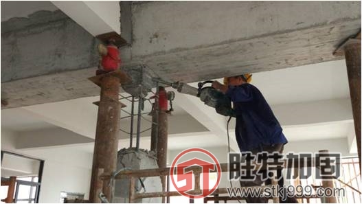工程概況:東平皮具廠為三棟五層廠房建筑,建筑總面積為11338㎡,因業(yè)主將廠房全部改造成學(xué)校,使用功能需要改變,廠房?jī)?nèi)排柱影響做教室使用,需對(duì)內(nèi)排柱每隔一根拔掉一根,三棟共拔掉柱子47根,在加固改造專(zhuān)業(yè),尚數(shù)首例。本工程屬于廠房拔柱子加固,在三舊改造中技術(shù)含量高、工程難度大。