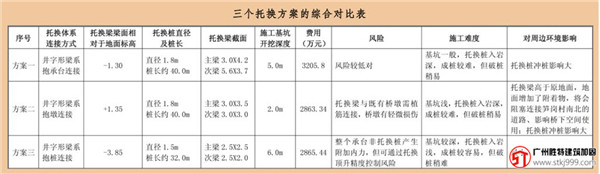 從上述對(duì)比結(jié)果,可看出三種樁基托換加固的托換方案,從不同角度考慮,都有各自的優(yōu)勢(shì)。
