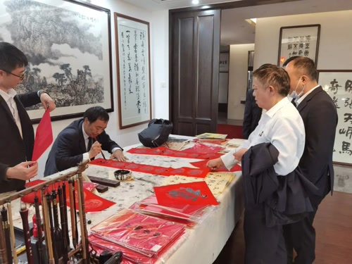 會后,我司書畫愛好者在我司職工書畫室大展身手,共度幸福年,隨后在我司開敞式餐廳共度美食時光,還有多媒體會議室私人KTV哦!