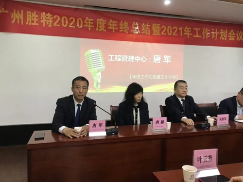 2021年02月01日為全面總結分析2020年度工作,研究部署2021年度經營管理目標和重點工作,2月1日下午,廣州市勝特建筑科技開發(fā)有限公司(以下簡稱“我司”)2020年度年終總結暨2021年工作計劃會議在我司職工會議中心8F·粵畢廳隆重召開,公司董事長吳如軍、副總經理唐穎、唐軍、吳軍勝、副總工程師趙正興、陳曦及各職能部門負責人,勝特全體骨干成員參會。