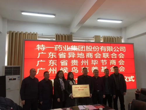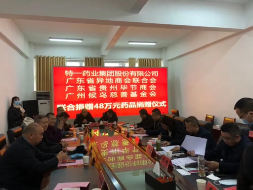 座談會后,舉行了捐贈儀式。由廣東省異地商會聯(lián)合會、廣州候鳥慈善基金會、廣東省貴州畢節(jié)商會聯(lián)合“特一藥業(yè)集團股份有限公司”捐出價值48萬元藥品,用于公益和幫扶老弱群體。