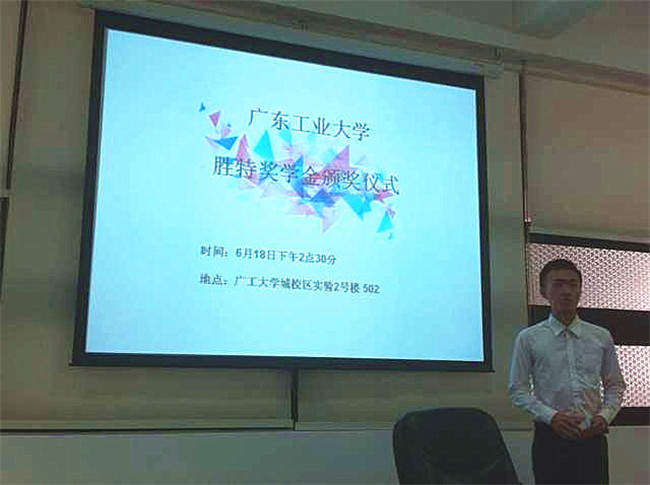 2015年6月18日下午,廣東工業(yè)大學(xué)“勝特獎(jiǎng)學(xué)金”頒獎(jiǎng)儀式在廣東工業(yè)大學(xué)實(shí)驗(yàn)二號(hào)樓502會(huì)議室舉行。出席頒獎(jiǎng)儀式校方代表分別為廣東工業(yè)大學(xué)土木與交通工程學(xué)院徐向東書(shū)記、郭緯喜副書(shū)記及獲得“勝特獎(jiǎng)學(xué)金”的各位學(xué)生們。這是我司頒發(fā)的第三期“勝特獎(jiǎng)學(xué)金”,作為的捐贈(zèng)方,我司常務(wù)副總經(jīng)理先生、副總經(jīng)理唐穎女士、綜合研發(fā)中心總經(jīng)理女士出席頒獎(jiǎng)儀式。