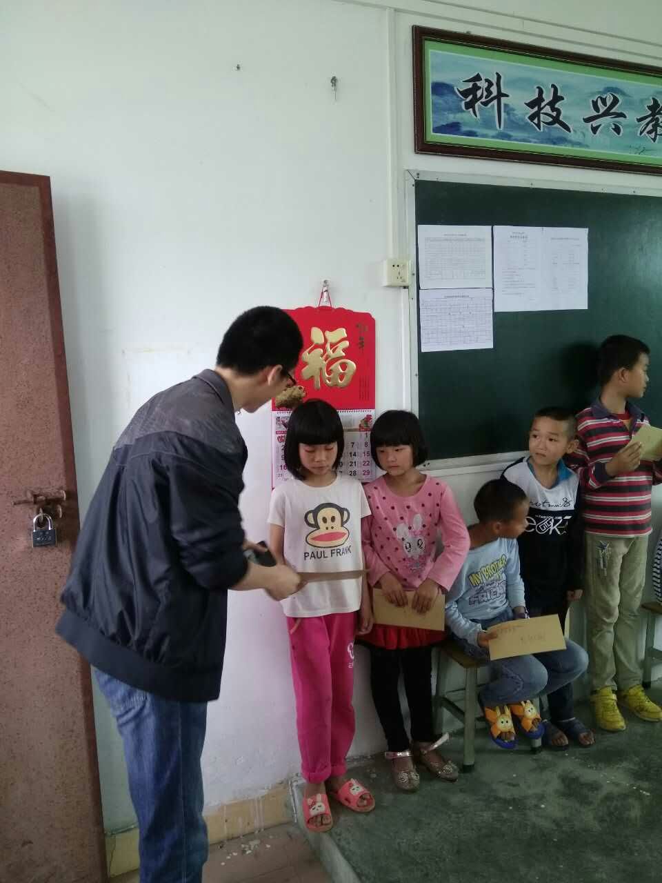 張主任代表廣州勝特加固公司向沙坪小學(xué)學(xué)生頒發(fā)慰問金