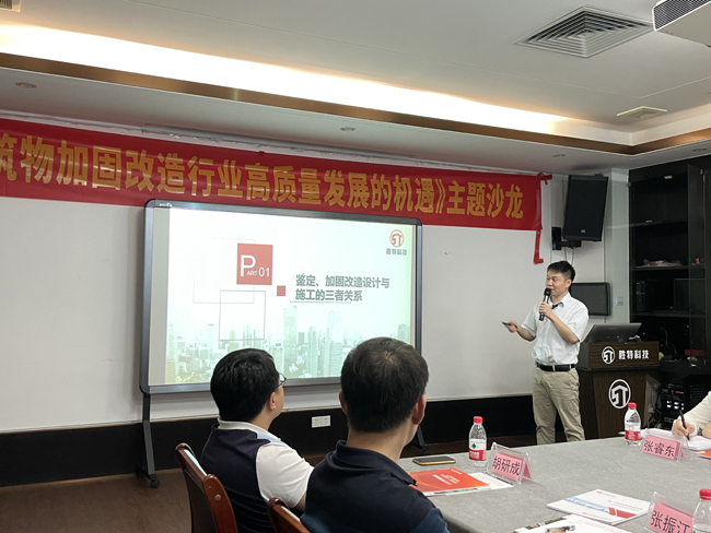 11月25日,由勝特科技全國高校土木工程校友技術交流中心、慕賢教育、中南大學校友總會廣州分會、交通大學廣東校友房地產(chǎn)建筑專委會、長江大學廣州城建校友會聯(lián)合主辦的"《建構筑物加固改造行業(yè)高質量發(fā)展的機遇》主題沙龍”在我司人才培訓中心成功舉辦?;顒硬捎镁€下+線上直播相結合方式,線下二十多位建筑領域的專家前輩、結構工程師、建造師等校友參會,線上近1000人在直播間觀看。