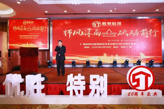 伴隨著冬日的暖陽,2019年1月14日,勝特科技20周年慶典,在廣東亞洲國際大酒店8樓會議廳隆重舉行。參加本次盛典的嘉賓包括省、市、區(qū)領導代表及建筑界的精英、行業(yè)前輩、專家、學者以及來自全國各地的嘉賓、勝特和勝力全體員工共約400余位。
