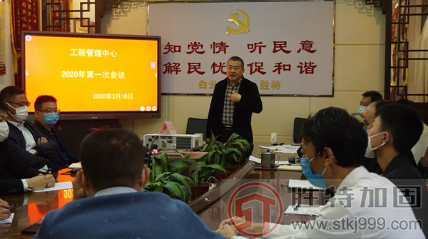 3月10日上午,廣州市勝特建筑科技開發(fā)有限公司(以下簡稱“我司”)工程管理中心2020年第一次工作會議暨復(fù)工復(fù)產(chǎn)推進(jìn)會在我司會議1室召開,董事長吳如軍出席會議,本次會議由公司副總經(jīng)理唐軍主持。