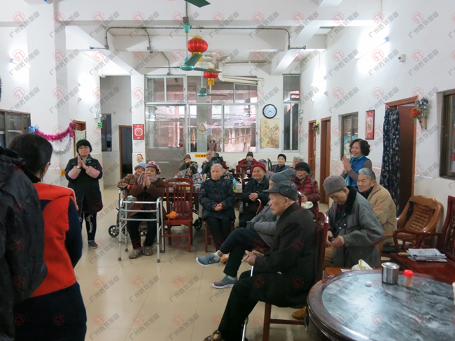天氣寒冷,老人家們窩在房間里悶著,義工隊(duì)的到來同時也給爺爺奶奶們帶來歡樂,一首溫馨的《月亮代表我的心》拉近隊(duì)員與老人家們的心。爺爺奶奶們聽著開心,也跟拍著拍子,輕聲哼唱??蓯鄣呐瞬犞及W,說“過年了,要多謝阿公給了我們現(xiàn)在這么美好的生活,也謝謝你們多次來探望,我們合唱一首國歌,謝謝阿公!”潘伯說的阿公難道是指的毛爺爺?哈~~