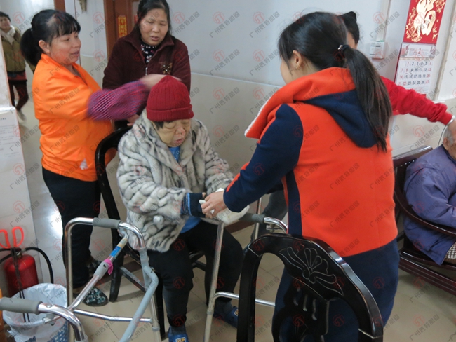 隨后,老人家們與義工隊(duì)成員拉起了家常,金暉養(yǎng)老院住著的大多數(shù)是廣州當(dāng)?shù)乩先?,很多都聽不懂普通話,而義工隊(duì)員也只有少數(shù)的幾位會說粵語。但懷揣著愛心,用心關(guān)愛就不存在語言障礙了。