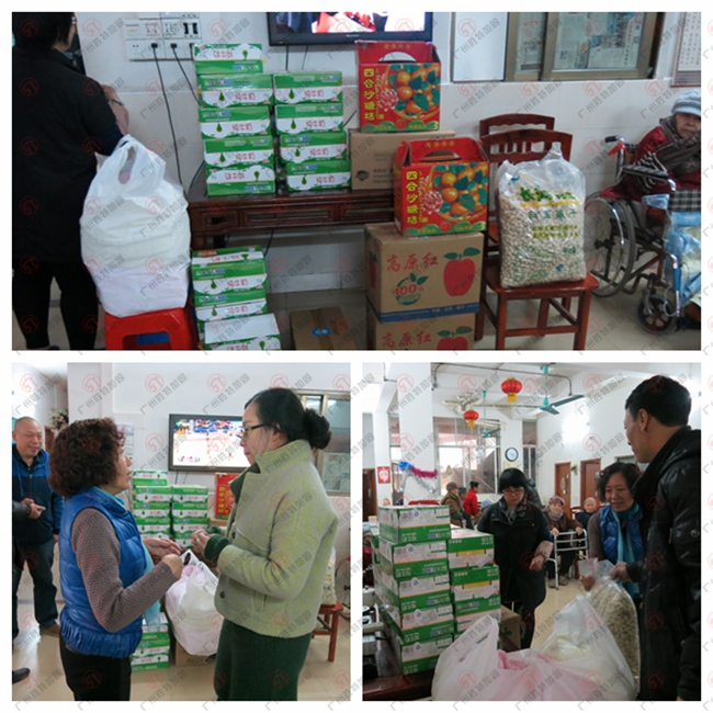 年近歲末,勝特義工隊(duì)送來牛奶,應(yīng)節(jié)水果,日用品等禮品,并向工作人員詢問老人家的近況。