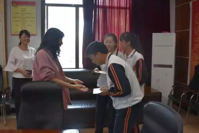 唐穎副總經(jīng)理給學(xué)生頒發(fā)慰問金并合影