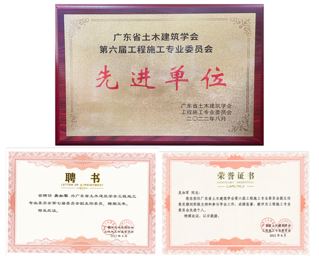 8月21日,廣東省土木建筑學(xué)會(huì)開(kāi)展了“廣東省土木建筑學(xué)會(huì)工程施工專業(yè)委員會(huì)第七屆換屆大會(huì)”。在本次會(huì)議中,我司榮獲“廣東省土木建筑學(xué)會(huì)第六屆工程施工專業(yè)委員會(huì)先進(jìn)單位”榮譽(yù)稱號(hào);我司董事長(zhǎng)吳如軍獲“廣東省土木建筑學(xué)會(huì)工程施工專業(yè)委員會(huì)先進(jìn)個(gè)人”稱號(hào)及連任廣東省土木建筑學(xué)會(huì)工程施工專業(yè)委員會(huì)第七屆委員會(huì)副主任委員。