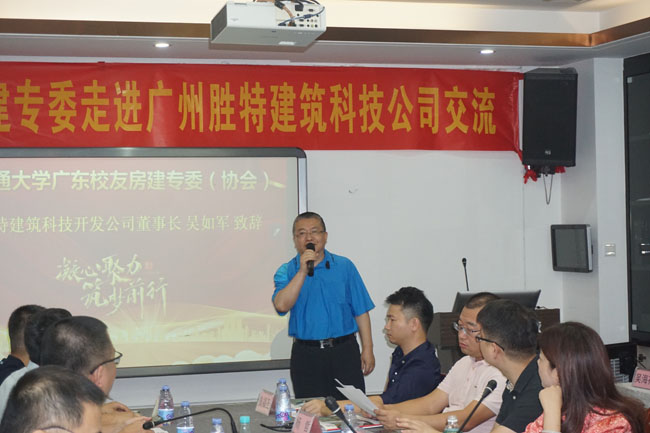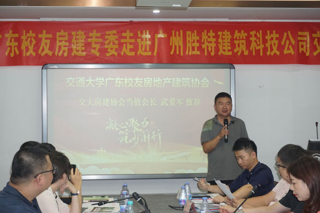 2023年7月15日,由交通大學(xué)廣東校友會(huì)房地產(chǎn)建筑專委主辦、廣州市勝特建筑科技開發(fā)有限公司協(xié)辦的“交大校友房建專委——走進(jìn)廣州市勝特建筑科技開發(fā)有限公司”活動(dòng),在廣州市勝特建筑科技開發(fā)有限公司人才培訓(xùn)中心舉行,來自廣東各地三十多位校友參加。本次會(huì)議由交通大學(xué)廣東校友會(huì)房地產(chǎn)建筑專委黃澤軍秘書長(zhǎng)主持,采用線下+線上直播相結(jié)合方式,線上超過300人觀看。