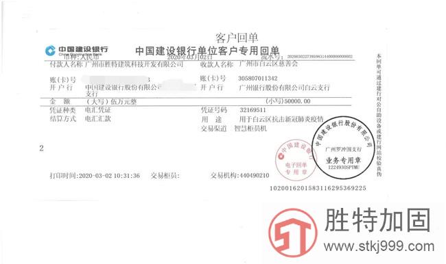 復(fù)工后我司第一件事就是向白云區(qū)慈善會捐贈50000元,用于白云區(qū)抗擊新冠肺炎,助力疫情防控工作。