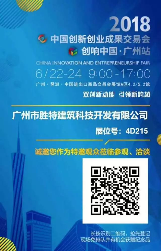自2015年起,廣州市勝特建筑科技開(kāi)發(fā)有限公司至今已連續(xù)參加了四屆,本屆創(chuàng)交會(huì)于6月22日至24日為期三天在廣州琶洲國(guó)際會(huì)展中心舉辦,我司有2個(gè)項(xiàng)目入選參展,分別是建筑加固改造、托換糾傾領(lǐng)域綠色技術(shù)以及四季快安智能停車(chē)場(chǎng)技術(shù)。