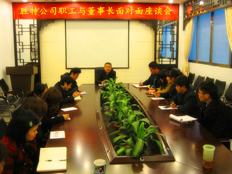 為了發(fā)揮工會的作用,加強(qiáng)內(nèi)部的溝通,聆聽員工的心聲,從根本上解決員工的生活困難,提高員工的生活質(zhì)量,提高工作效率。2012年2月27日下午,召開了勝特公司職工代表與董事長面對面座談會,我司董事長吳如軍先生主持了本次交流會議,出席本次會議的還有公司常務(wù)副總經(jīng)理兼市場拓展中心總經(jīng)理先生、工會主席唐野先生、其他中高層領(lǐng)導(dǎo)以及員工。