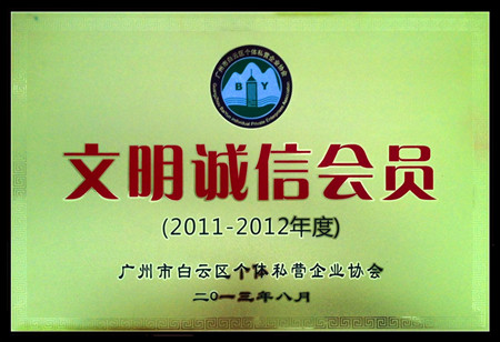 2013年8月,在白云區(qū)個體私營企業(yè)協(xié)會開展的“文明誠信會員”評選活動中,勝特公司榮獲2011-2012年度“文明誠信會員”稱號。