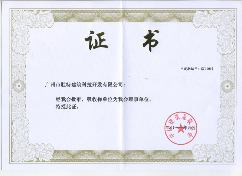 繼我司榮獲中國建筑業(yè)聯(lián)合會2010年度全國工程建設“優(yōu)秀施工企業(yè)”和“安全生產先進單位”稱號后,勝特加固公司日前又成為中國建筑業(yè)聯(lián)合會(China ArchitectureLeague)簡稱CAL理事單位!