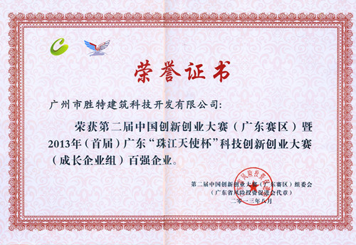 憑著此5項(xiàng)綠色技術(shù)組合集成的《加固改造、托換糾傾綠色環(huán)保技術(shù)的工程運(yùn)用》項(xiàng)目在第二屆中國創(chuàng)新創(chuàng)業(yè)大賽“珠江天使杯”比賽中于700余項(xiàng)創(chuàng)新創(chuàng)業(yè)項(xiàng)目中榮獲創(chuàng)新百強(qiáng)。