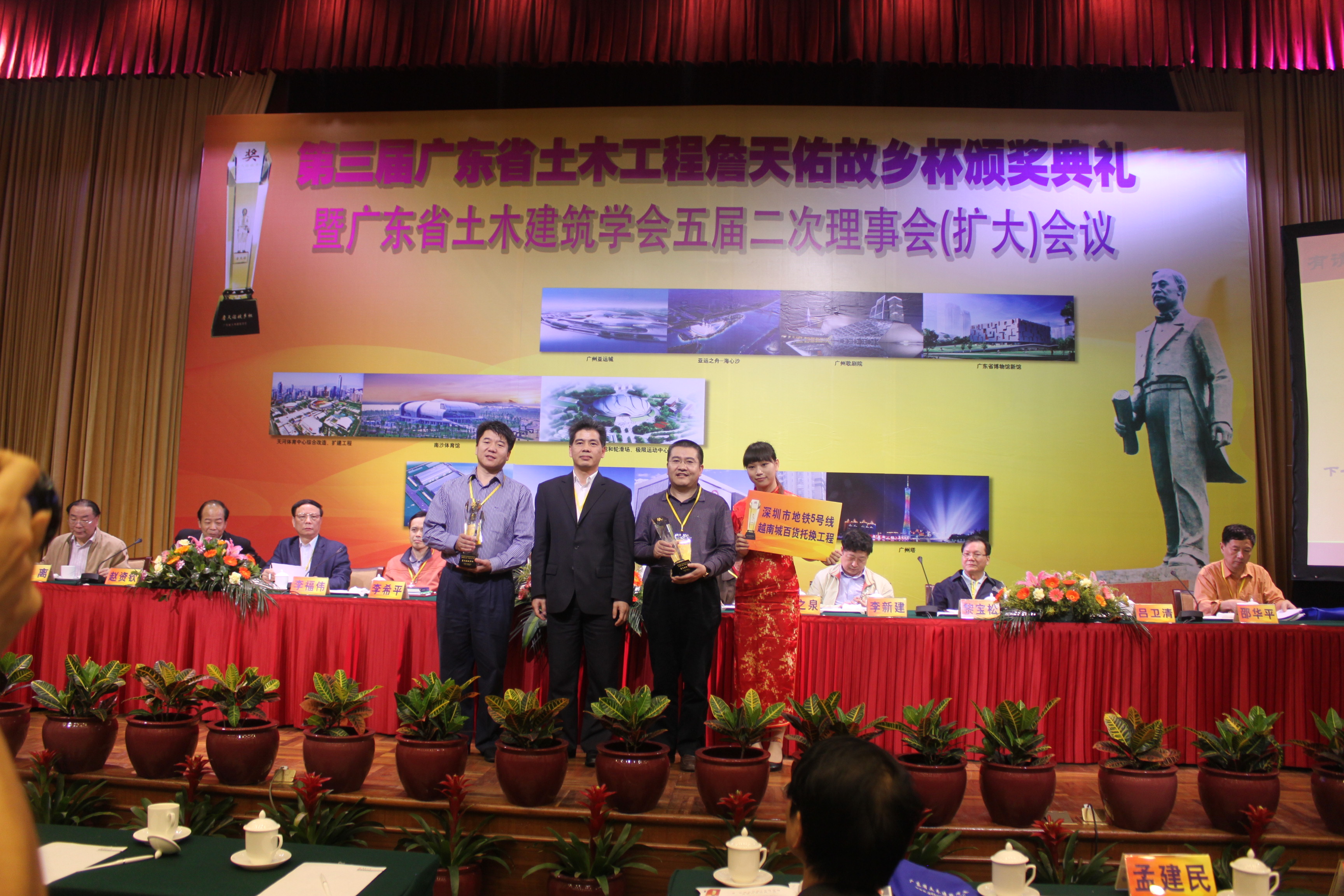 我司董事長吳如軍先生代表我司上臺領(lǐng)獎,接受了的廣東省土木建筑學(xué)會隆重表彰和嘉許。深圳5號線穿越南城百貨托換工程中克服了交叉干擾、技術(shù)、工期等難題,讓工程圓滿竣工,受到上級、廣大同行的肯定。此次獲獎將會鞭策我司再接再厲,作出新的成績。