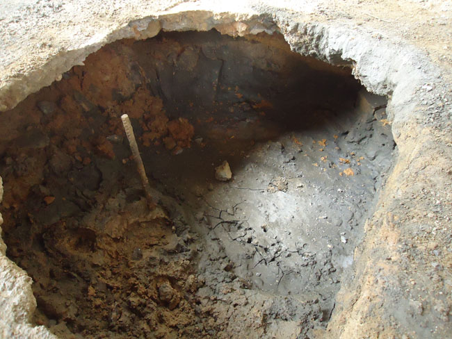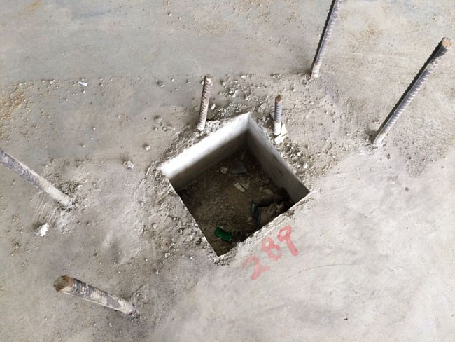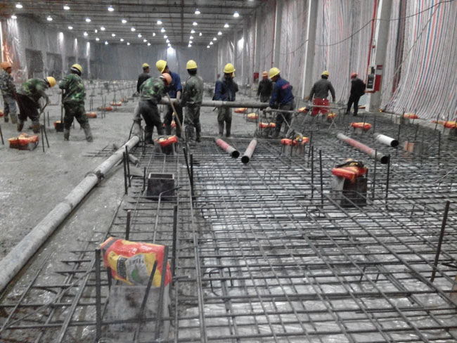 本工程主體結(jié)構(gòu)為單層多跨門式鋼架,基礎(chǔ)采用預(yù)應(yīng)力砼管樁、旋挖樁及獨(dú)立基礎(chǔ)等多種形式。由于地層中含有淤泥質(zhì)土層且未進(jìn)行有效處理,導(dǎo)致4-8軸線內(nèi)的地面出現(xiàn)明顯的沉陷與開裂,多表現(xiàn)在倉(cāng)儲(chǔ)和通道區(qū)域。廠房?jī)?nèi)部該部分區(qū)域用作倉(cāng)庫(kù)和車輛通道,使用荷載較重,也是導(dǎo)致地面下沉和開裂的一個(gè)原因,由于嚴(yán)重影響到主廠房的正常使用,根據(jù)業(yè)主要求對(duì)原地面結(jié)構(gòu)進(jìn)行加固處理。整個(gè)地坪基礎(chǔ)加固過(guò)程,我司共拆除原素混凝土地板17280㎡、新做結(jié)構(gòu)地板17280㎡、群錨靜壓樁780根。該工程用到的群錨靜壓樁專利技術(shù)(ZL201120281350.1)后續(xù)也多次運(yùn)用在同類型基礎(chǔ)加固工程當(dāng)中,并體現(xiàn)出很好的處理效果。