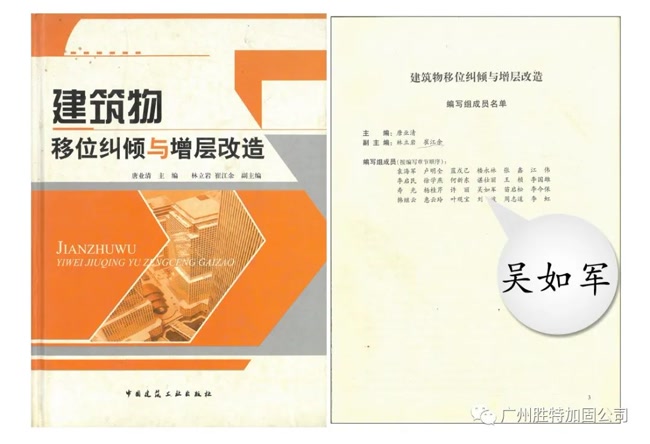 本書是公司二十周年慶典給予行業(yè)的饋禮,是我們多年來高難度工程的典型案例及各種特種新技術(shù)的匯編,供建(構(gòu))筑物的加固、改造、糾傾、托換工程的科研、設(shè)計(jì)、施工等工程技術(shù)人員和相關(guān)專業(yè)學(xué)校師生參考和借鑒。吳如軍董事長為該書主編人,該書已于2018年12月起發(fā)行,在各大書店有售。