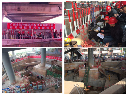 2013年12月底,廣州市勝特建筑科技開發(fā)有限公司(簡稱:廣州勝特建筑加固)為深圳地鐵排障礙,順利對彩虹橋橋梁樁基完成托換頂升工程,確保深圳地鐵隧道的順利開通!