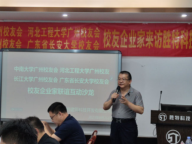 8月26日,由中南大學(xué)廣州校友會、長江大學(xué)廣州校友會、河北工程大學(xué)廣州校友會、廣東省長安大學(xué)校友會四校校友會聯(lián)合舉辦的"四所高校校友建筑行業(yè)專家、企業(yè)家聯(lián)誼互動沙龍”在廣州市勝特建筑科技開發(fā)有限公司人才培訓(xùn)中心成功舉辦?;顒硬捎镁€下+線上直播相結(jié)合方式,線下數(shù)十位不同領(lǐng)域的建筑行業(yè)專家、企業(yè)家校友參會,線上近1000人在直播間觀看。
