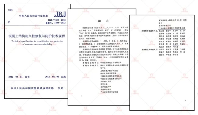 2009年參編《混凝土結(jié)構(gòu)耐久性修復(fù)與防護(hù)技術(shù)規(guī)程》 JGJ/T259-2012