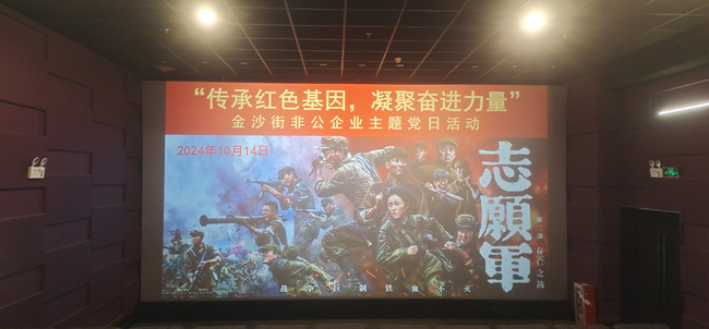 2024年10月14日,為增強愛國意識,激勵黨員傳承黨的優(yōu)良傳統(tǒng),加強我司黨員與在職職工們的政治思想教育,我司黨支部與金沙街商會黨支部聯(lián)合組織開展“傳承紅色基因,凝聚奮進力量”觀影主題黨日活動,觀看《志愿軍-存亡之戰(zhàn)》。