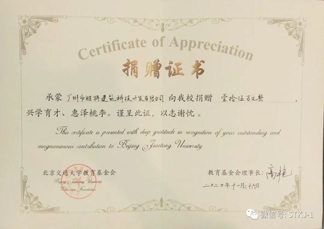 2020年11月26日下午我司捐贈的“隧道與地下工程研究基金”在北京交通大學知行大廈舉行捐贈儀式,由北京交通大學土建學院馬強黨委書記主持,廣州市勝特建筑科技開發(fā)有限公司吳如軍董事長與北京交通大學教育基金會陳磊副秘書長簽訂捐贈協(xié)議,捐贈金額十五萬元人民幣,基金用于隧道與地下工程研究,陳磊副秘書長向吳如軍董事長頒發(fā)了捐贈證書。