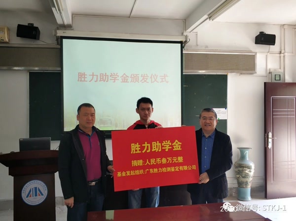 在報(bào)告開始之前,吳如軍董事長還代表勝特集團(tuán)旗下的廣東勝力檢測鑒定有限公司向華南農(nóng)業(yè)大學(xué)水利與土木學(xué)院捐贈“勝力助學(xué)金”。