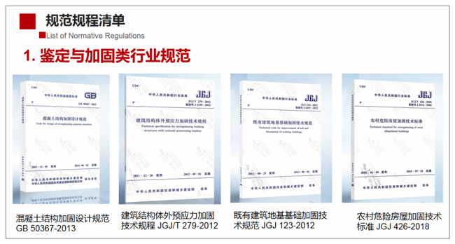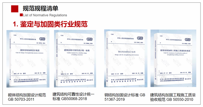 在第二講的內(nèi)容中,我重點闡述了加固改造規(guī)范規(guī)程對行業(yè)高質(zhì)量發(fā)展的重要性,這一講我將介紹加固類相關(guān)規(guī)范的一些情況。