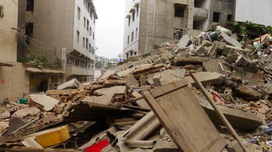 在現(xiàn)場(chǎng)看到,一片廢墟里散落著碎磚塊和居民家中的沙發(fā)、塑料凳、床單等物品,在廢墟四周已拉開了警戒線,當(dāng)?shù)叵?、供電等部門正在現(xiàn)場(chǎng)有序調(diào)查了解情況,處置善后事宜。