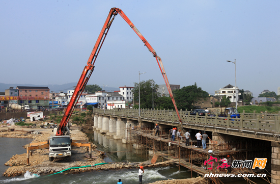 6月12日,范家橋加固工程現(xiàn)場,施工人員正在澆筑混凝土對(duì)橋墩進(jìn)行加固。隨著城市建設(shè)力度的加大,南門大溪上的范家橋因經(jīng)常有大噸位工程車通行,使該橋存在著很大的安全隱患,危及人民群眾的生命財(cái)產(chǎn)安全。近日,投資180余萬元的范家橋加固工程開始動(dòng)工,預(yù)計(jì)本月中旬完工。另據(jù)悉,范家橋的改建方案也正在同步進(jìn)行中,可望在今年底前開工建造。