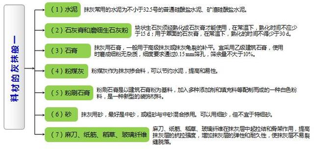 水泥標號應(yīng)不低于32.5號,其安定性試驗必須合格;砂料應(yīng)堅硬潔凈,其中粘土、泥灰粉末等含量不超過3% ,過篩后不得含有雜物,石灰膏必須經(jīng)過塊狀淋制,并經(jīng)過3 mm方篩孔過濾,熟化時間不少于15 d。紙筋石灰宜集中加工,紙筋要磨細,且熟化時間不少于15 d。為了控制抹灰層的厚度和平整度,抹灰前必須先找好規(guī)矩,即四角規(guī)方、橫線找平、立線吊直、彈出準線和墻裙、踢腳板線。