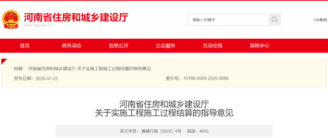 近日,河南省住建廳下發(fā)《關(guān)于實(shí)施工程施工過程結(jié)算的指導(dǎo)意見》。