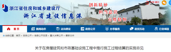 2020年5月20日,浙江省住建廳發(fā)布《關(guān)于在房屋建筑和市政基礎(chǔ)設(shè)施工程中推行施工過程結(jié)算的實(shí)施意見》:自6月20日起,在全省房建和市政項(xiàng)目中全面推行施工過程結(jié)算。
